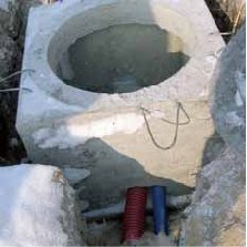 5. На прямых участках через 120-140 метров необходима установка смотровых колодцев. Также, колодцы должны устанавливаться при поворотах и в местах ответвления от трассы. В основном используются бетонные смотровые колодцы марок ККС-1 и ККС-2 (существуют также колодцы больших размеров марок ККС-3 и ККС-4).